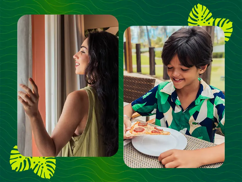 E, para os pais que desejam um momento a dois, é possível deixar os filhos jantando com os monitores em espaços seguros[a] e acompanhados por profissionais treinados. É o equilíbrio perfeito entre conforto familiar e momentos de descanso.